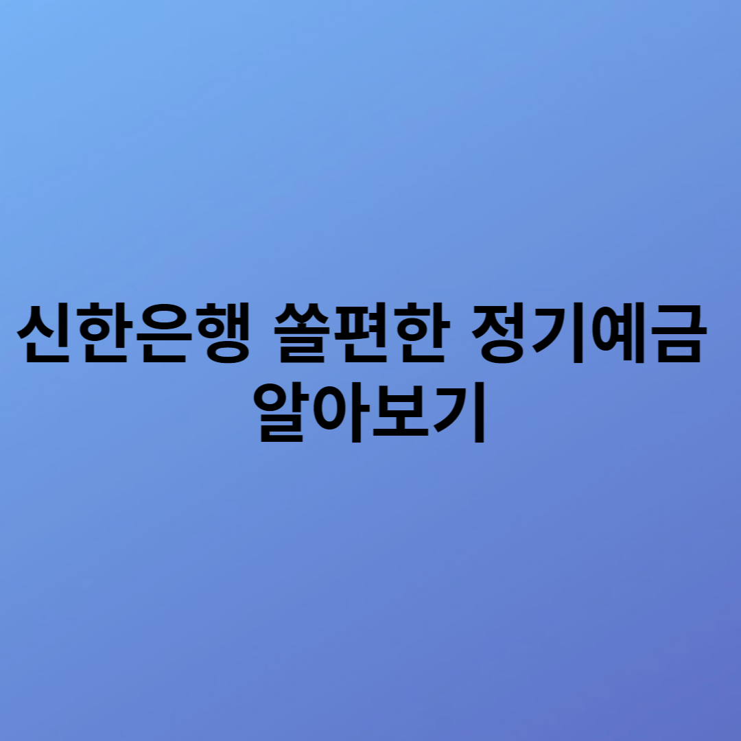 이번에 소개해드릴 것은 신한은행 쏠편한 정기예금을 소개해드리도록 하겠습니다.