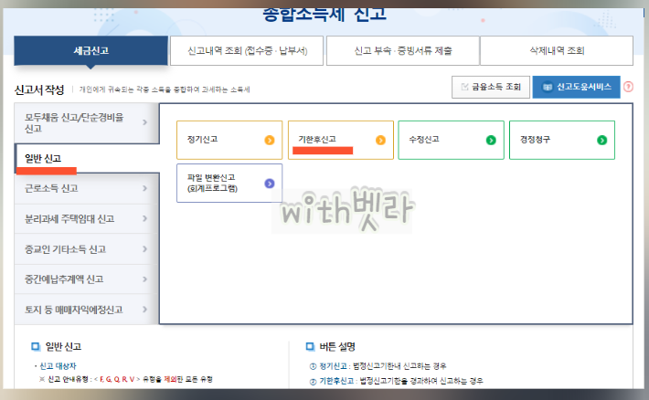 그 후 왼편의 일반신고를 들어가신 후 기한 후 신고를 누릅니다.
