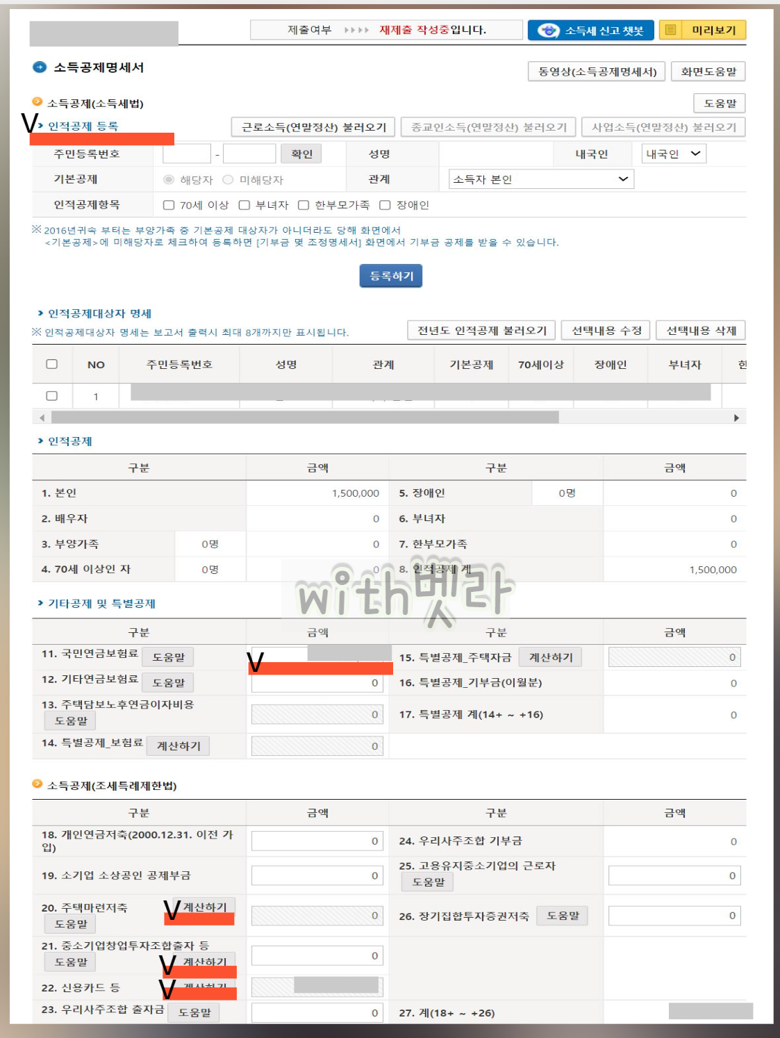 1. 소득공제로는 기본적으로 인적 소득공제, 신용카드 공제,노란우산 소득공제가 습니다.