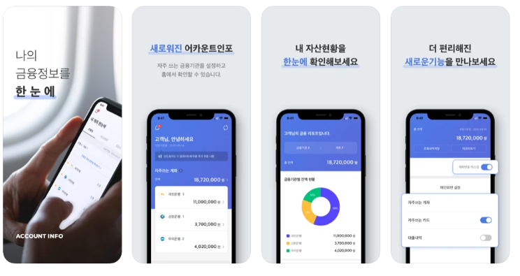 각각 안드로이드와 애플스토어에서 어카운트인포를 다운받으시면 됩니다.
