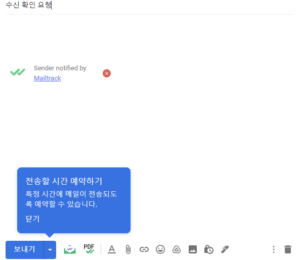 내용에도 sender notified by mailtrack이라고 나오게 됩니다.