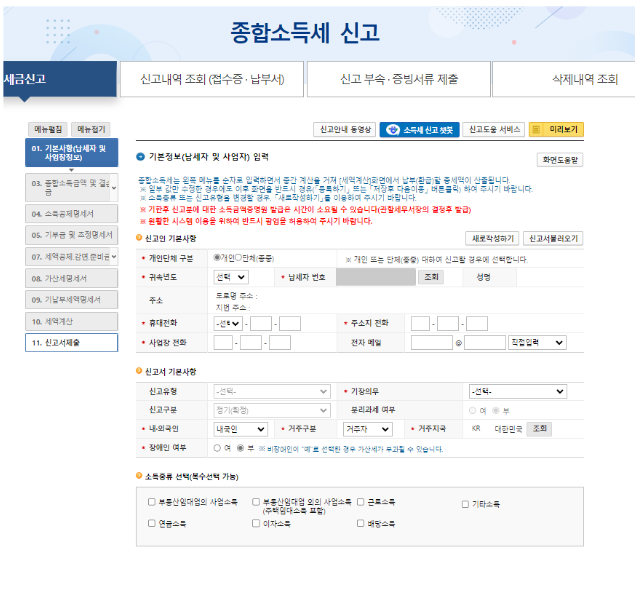 이전의 종합소득세 신고방법과 많은 내용이 비슷하지만