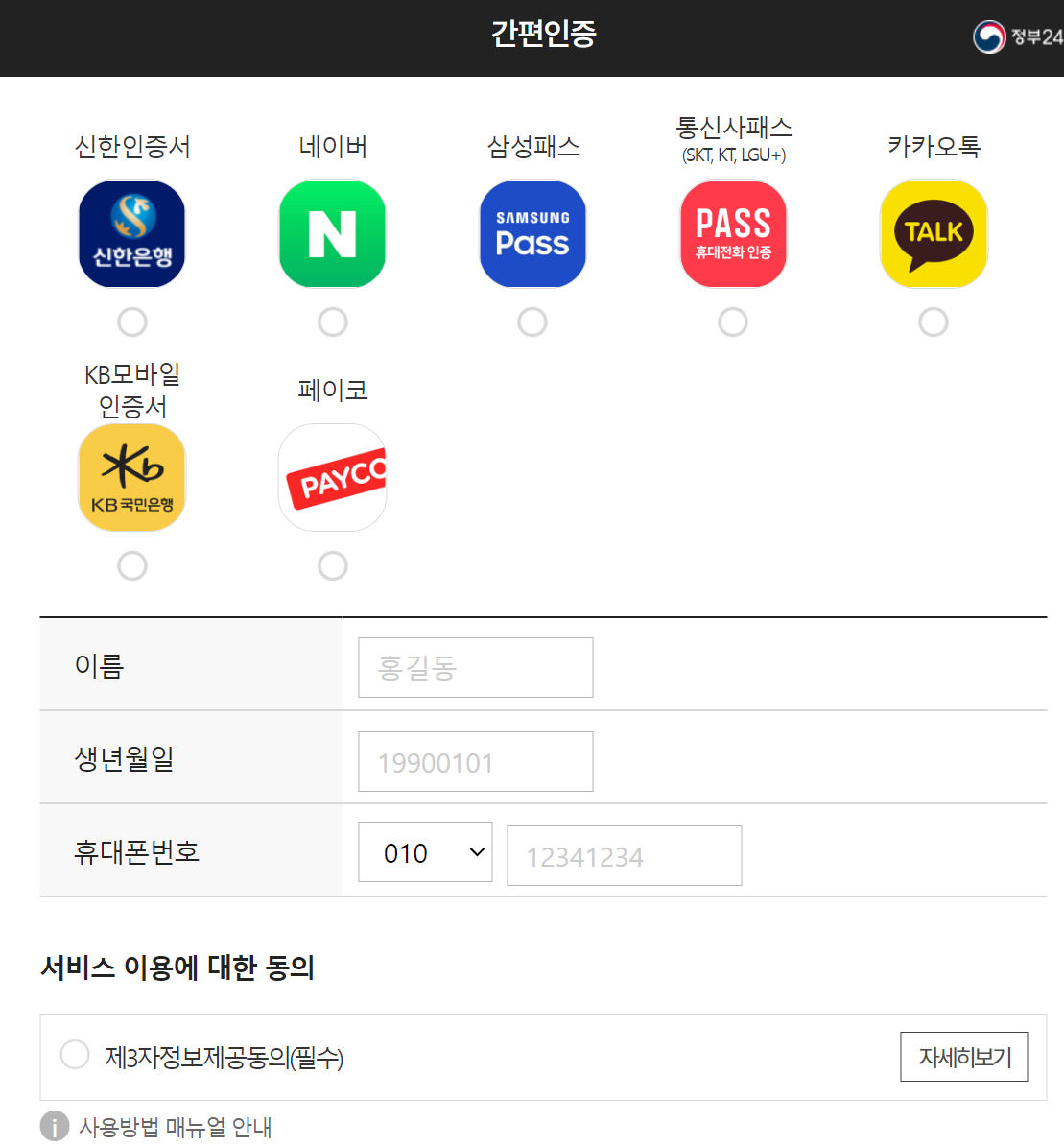 위에 바로가기를 통해 정부 24시에 들어가셔서 로그인을 하시길 바랍니다.