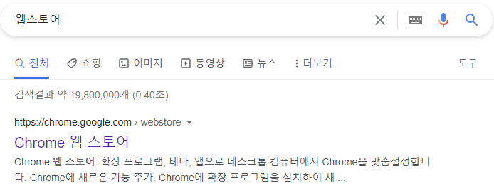 구글 검색엔진에서 크롬웹스토어 or 웹스토어를 검색합니다.