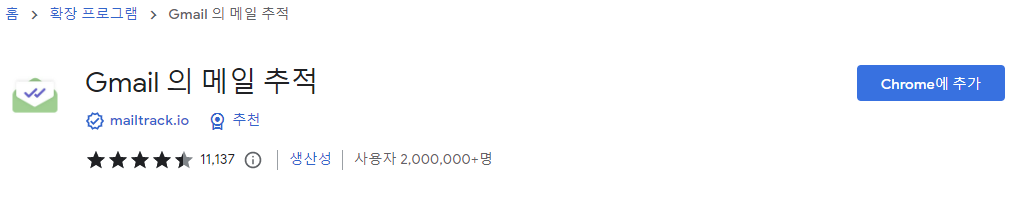 Gmail의 메일 추적이라는 프로그램이 있는데 오른쪽에 보면 Chrome에 추가 버튼이 있습니다.