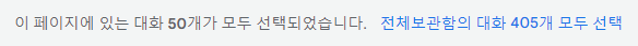 왼쪽상단 체크박스에 전체선택을 누른 후 팝업 메시지에서 모두 선택을 클릭하면됩니다.