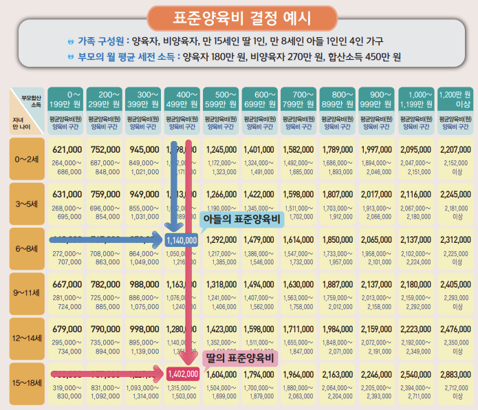 다. 딸과 아들의 표준양육비 합계 2,542,000원(=1,402,000원+1,140,000원)